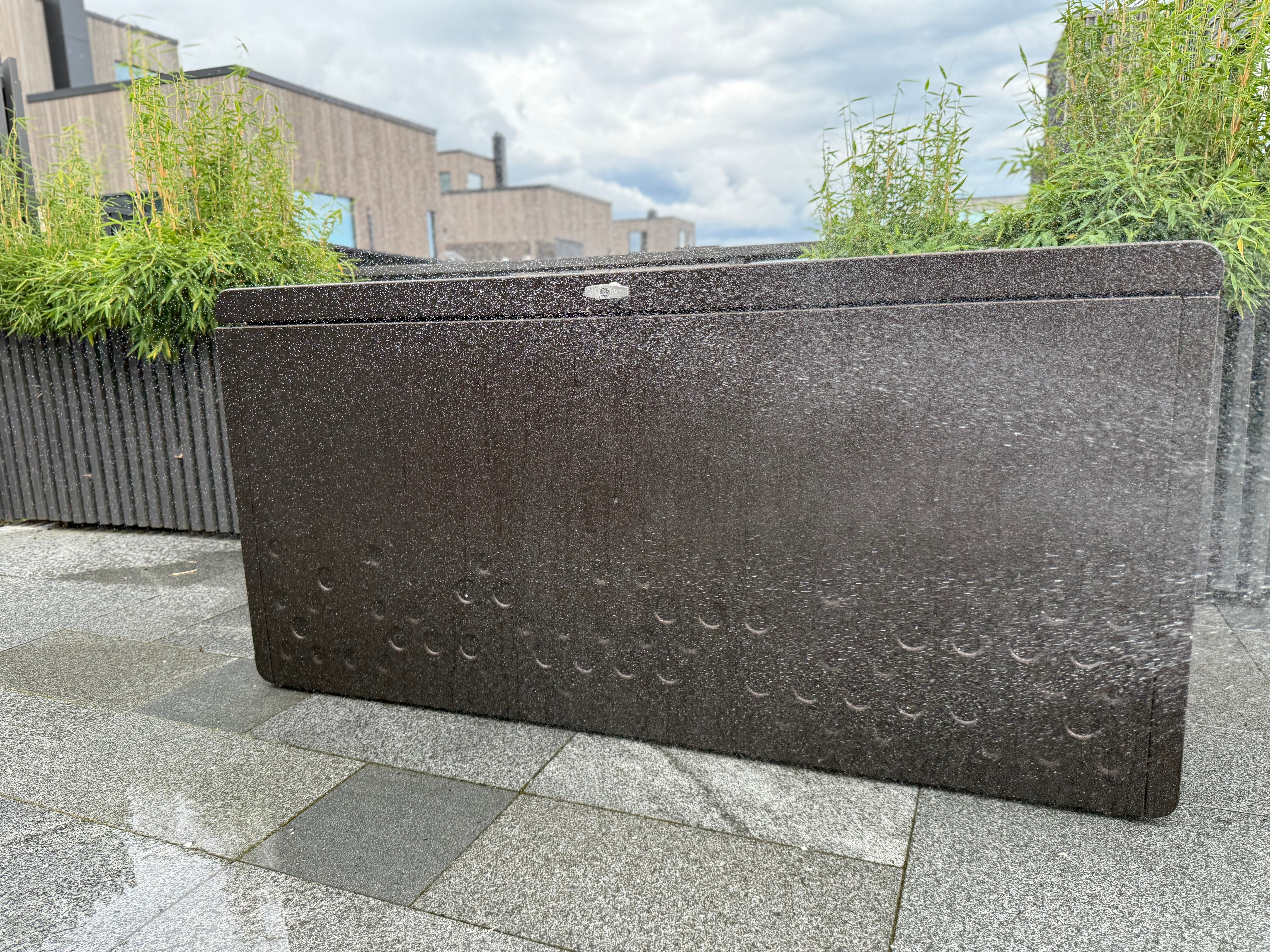 Med hjelp av de avrundede hjørnene og pulverlakk skapes et organisk og naturlig uttrykk som gjør at installasjonen smelter inn i omgivelsene.